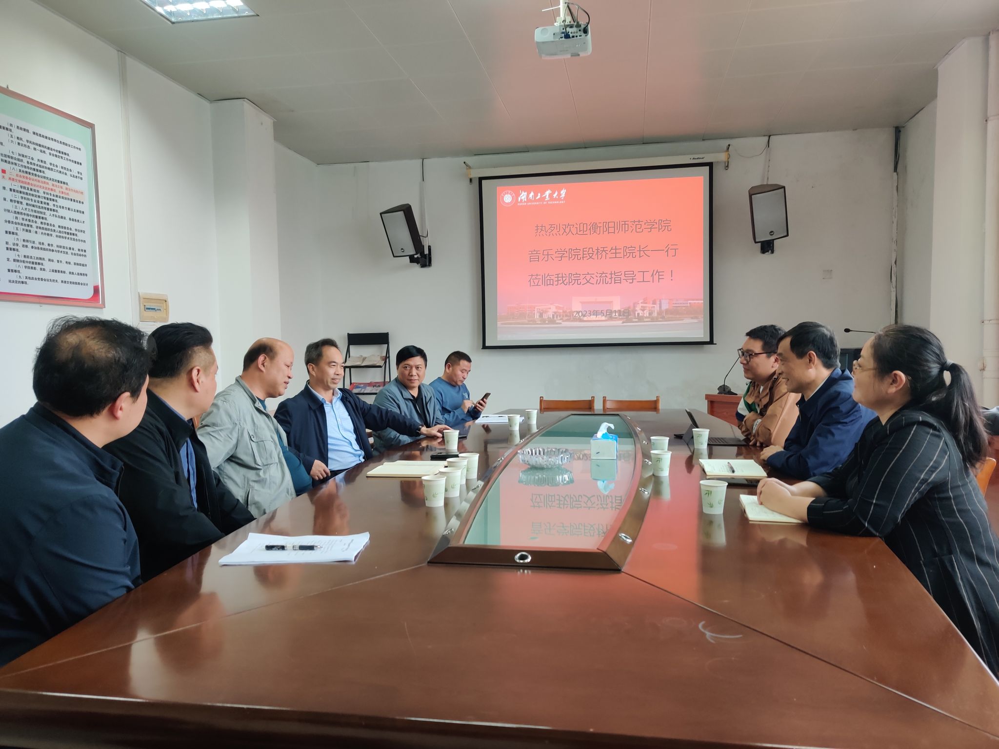 2023年5月11日,伟德victor1946网站经理段桥生教授与副经理陈瑾、崔少博一行赴湖南工业大学伟德victor1946网站交流。双方就艺术硕士(音乐)研究生人才培养、学科与专业建设、团队队伍建设等方面进行了广泛深入的沟通与探讨。