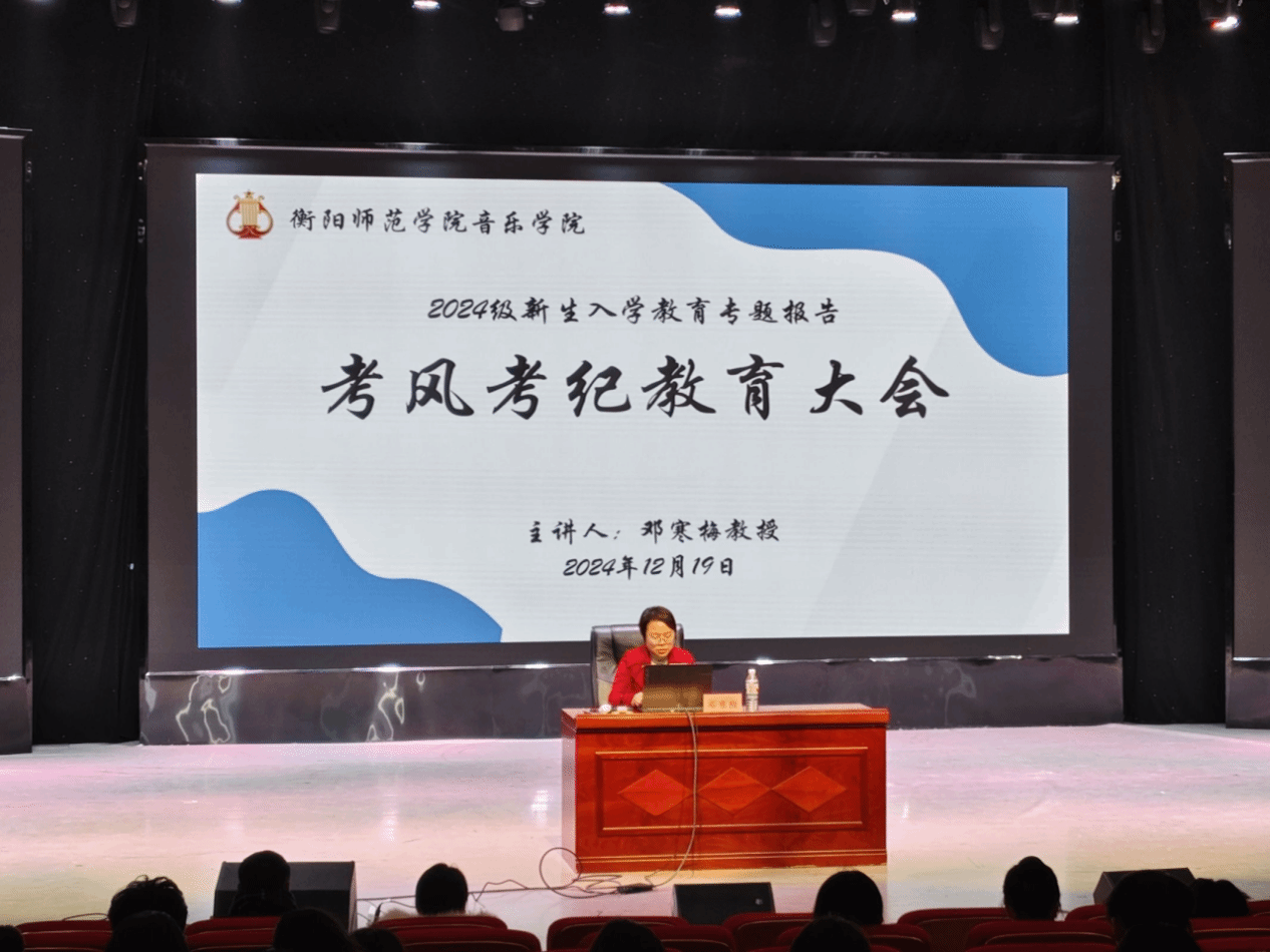 为端正校园考风考纪,强化员工规则意识,公司于12月19日18:30在衡阳师范公司东校区演艺厅组织召开伟德victor1946网站新生考风考纪教育大会。本次讲座由党总支副书记邓寒梅主讲,学工办主任兼团委书记吴瑶瑶、辅导员蒋思源、唐世芳老师出席,公司全体2024 级新生聆听。