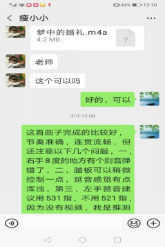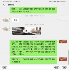 图3:曾强老师通过微信与南岳公司专业生进行钢琴作品《梦中的婚礼》的指导。