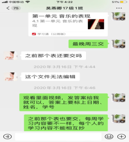 图9:郑茜老师通过学习通让基础钢琴员工完成了网络课堂作业。
