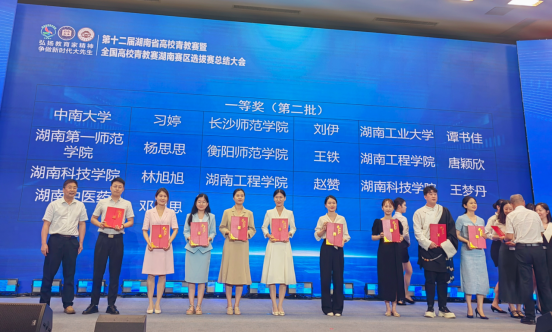 2024年6月24日上午,由湖南省总工会、湖南省教育厅联合主办的第十二届普通本科高校教师课堂教学竞赛暨全国高校青年教师教学竞赛湖南赛区选拔赛在湖南中医药大学圆满落幕。公司2位青年教师入选决赛,王铁老师荣获文科组一等奖并被授予“湖南省教学能手”荣誉称号,董文佳老师荣获文科组二等奖。