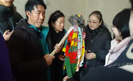1月12日上午,师生团队前往非遗传承人王碧泉老师家中,现场领略了皮影戏的独特魅力,王老师带领多位传承人共同登台,为大家精彩演绎了《穆桂英挂帅》和《北路》等经典唱段,精湛的技艺和独特的表演让师生们沉醉其中。下午,皮影传承人亲自教学,从皮影的操作技巧,到地方方言的演唱韵味,再到铜锣打击乐器的演奏诀窍,一一悉心传授,让师生们亲身体验到皮影戏表演的丰富内涵。