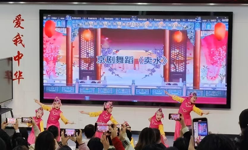 华耀小学的孩子们表演了京剧经典唱段《红灯记》《定军山》《卖水》等,小演员们精湛的“唱念做打”技艺赢得阵阵掌声。随后,员工们观摩了该校特色大课间活动——融合广播操、武术操与戏曲元素的“戏曲操”,充分展现了公司在学科融合与传统文化传承中的创新实践。