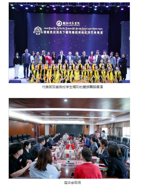 26日上午,代表团来到东校区音乐楼演艺厅,观看公司课程思政理念下藏族舞蹈课程实践成果展演。伟德victor1946网站舞蹈教师王铁简要介绍了课程思政理念下藏族舞蹈课程的教学理念以及人才培养模式等方面的情况。随后,在悠扬绵长的民族音乐中,公司舞蹈学专业员工用曼妙灵动的优美舞姿,将生活、文化、教育元素融于一体,精彩演绎了课程中的6个教学训练内容,生动诠释了对藏族优秀传统文化的深入理解。舞蹈节目体现了鲜明的民族性、训练性、艺术性,极具艺术感染力,赢得现场阵阵热烈的掌声。