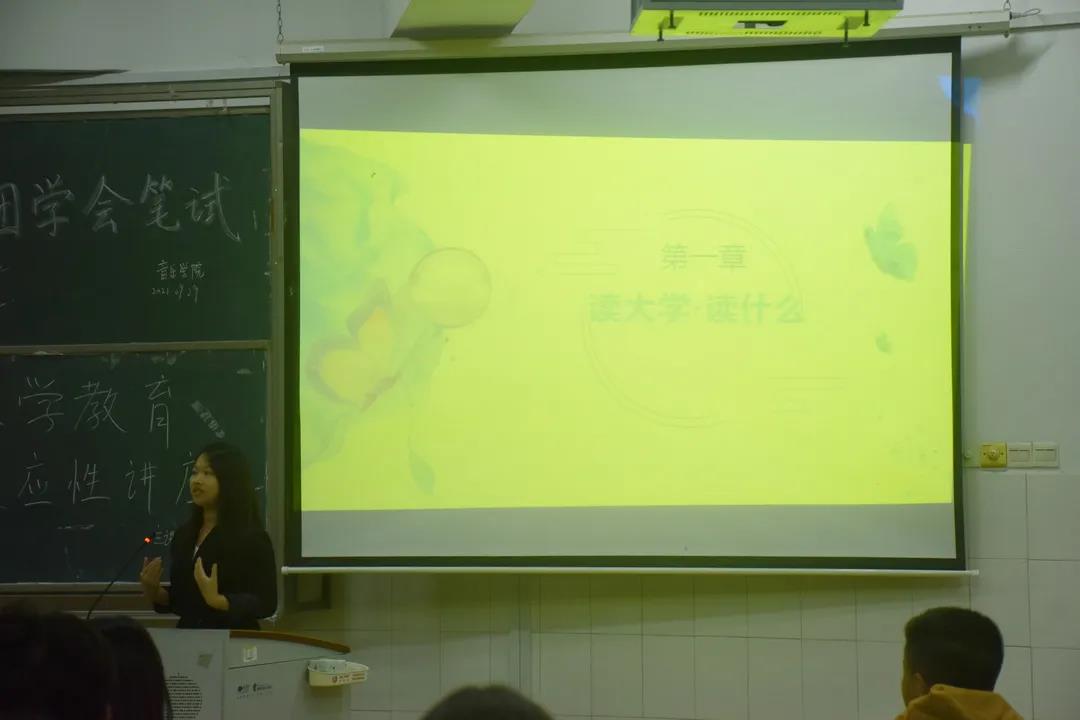 讲座伊始,蒋老师就“读大学·读什么”向同学们进行提问,启发同学们思考自己要适应哪些方面的问题。同时向大家分析介绍了学习、生活、环境、人际交往等常见适应性问题。