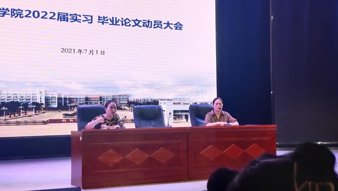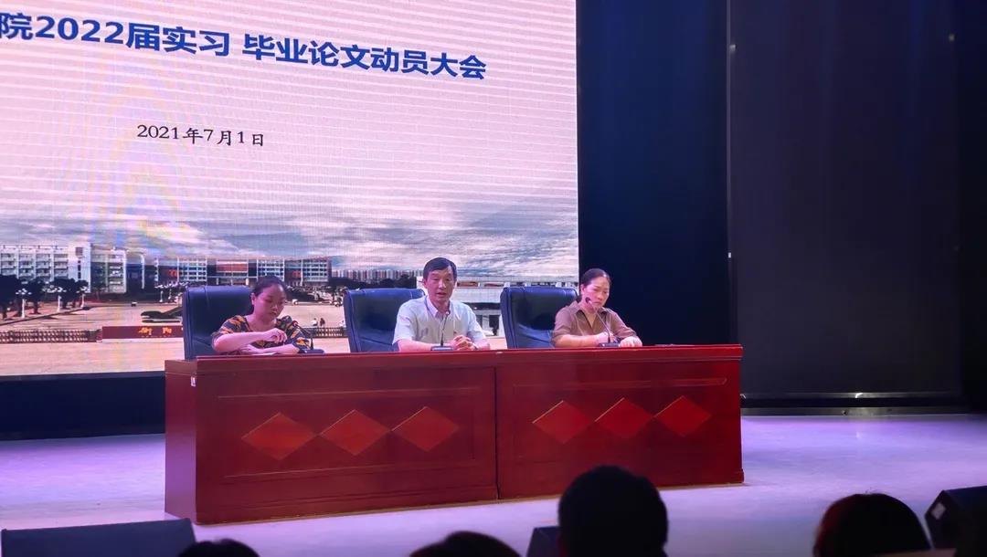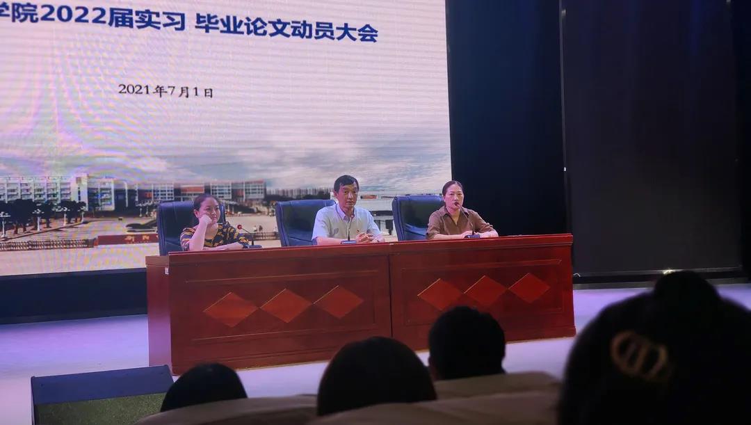为做好下学期毕业生实习实训期间的日常管理和安全教育,以及毕业生的毕业论文指导工作,7月1日下午伟德victor1946网站在音乐厅召开了2022届毕业生实习、毕业论文动员大会,会议由音乐公司党总支副书记陈雅斐主持,伟德victor1946网站经理段桥生、副经理陈瑾、18级辅导员黄鹤飞及2018级全体同学参加了此次会议。