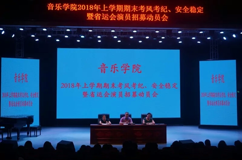7月12日晚,2018年上学期期末考风考纪、安全稳定暨省运会演员招募动员大会于演艺厅顺利召开,参与本次会议的有音乐公司党总支书记朱志红、副书记陈雅斐、辅导员刘颖老师,以及16级、17级全体同学。本次大会由音乐公司党总支副书记陈雅斐主持。