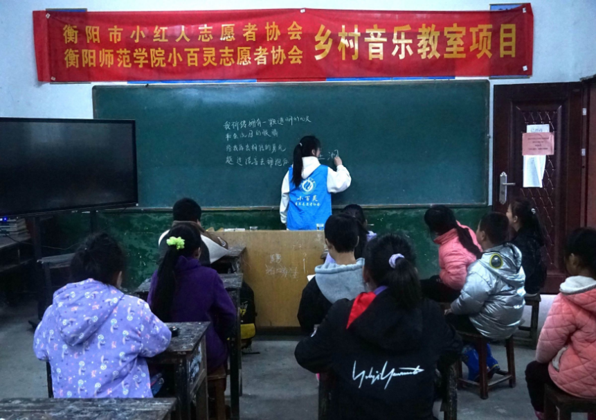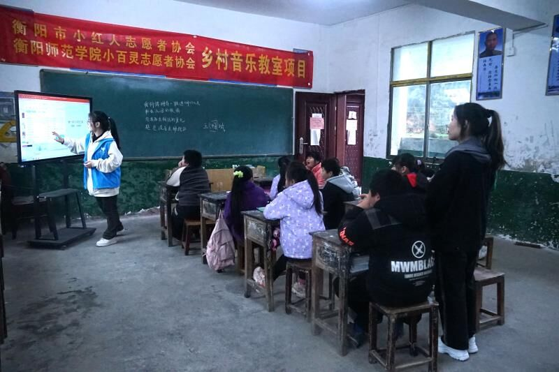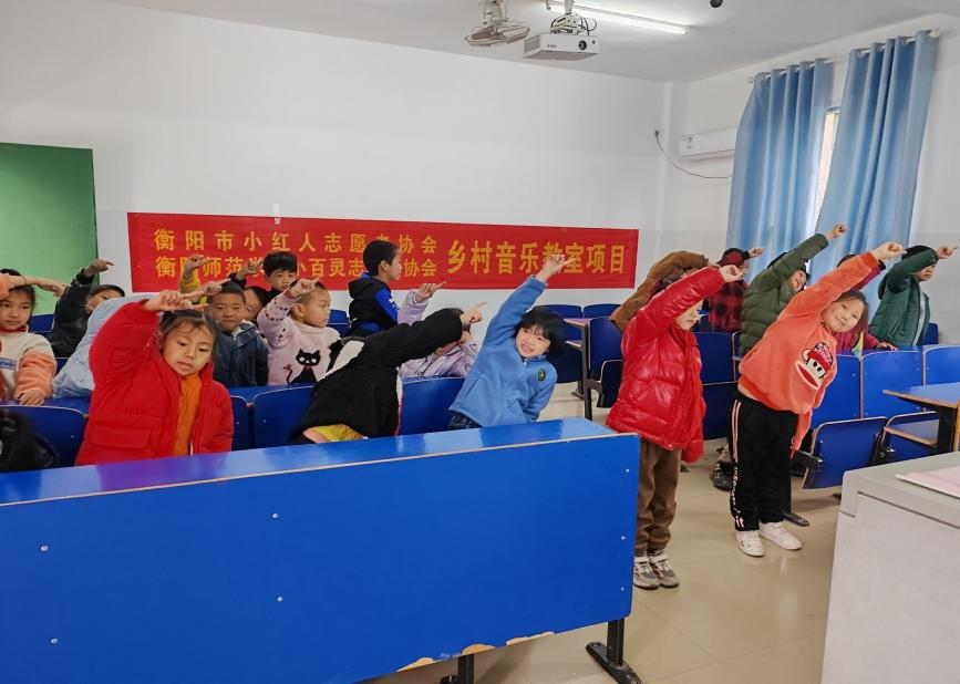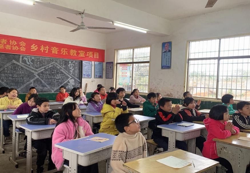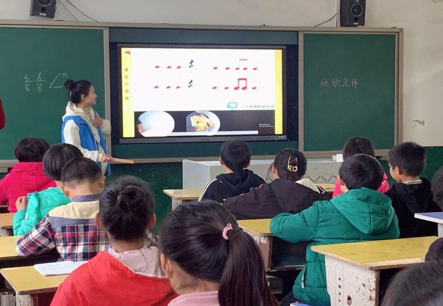 支教课堂开始啦!同学们和老师一起歌唱着动听的旋律,在音乐的海洋里遨游。他们律动着身体,享受音乐带来的欢乐。