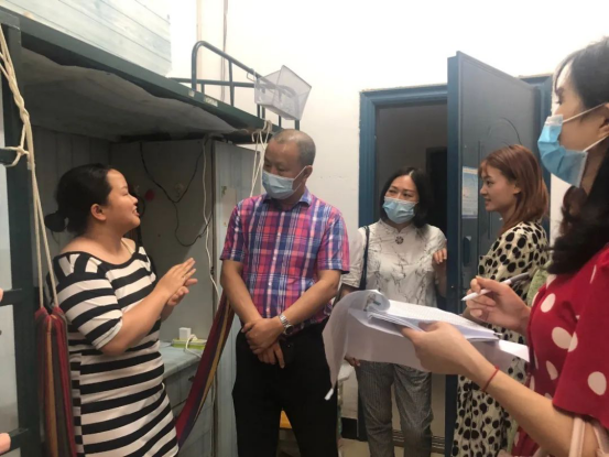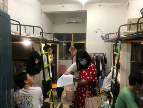 公司领导、辅导员老师来到毕业生的宿舍,与毕业生进行深入交流,亲切询问了同学们的问题和困难,着重关心大家的身体、生活和就业等状况,并叮嘱同学们要认真遵守公司疫情防控各项规定。