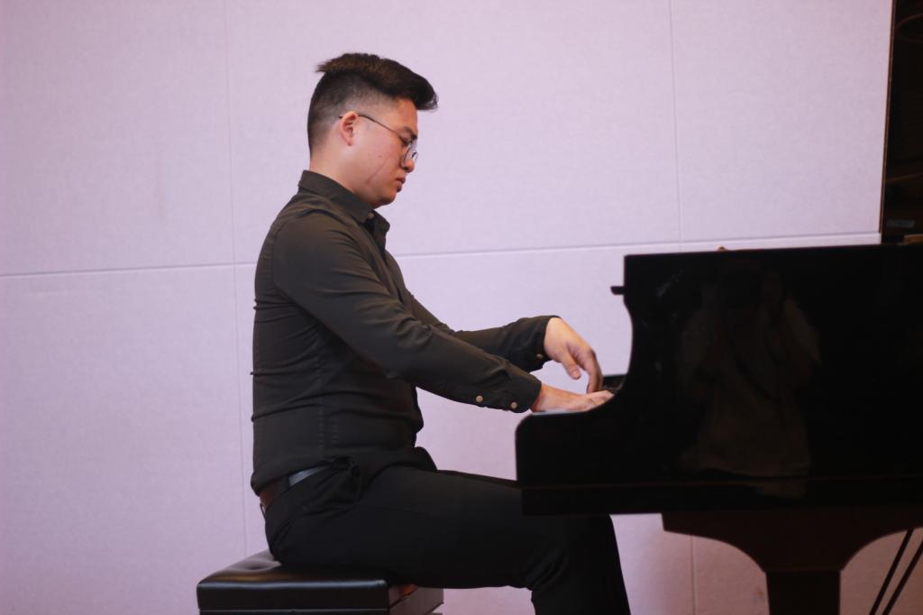 彭博士的演奏细腻有度,乐曲婉转悠扬,起承转合间勾勒出舞蹈演员练舞时的优美身姿,令人身临其境。同时,在演奏过程中,彭博士深厚的基础功与超高的演奏技巧,生动地展现在大家眼前,获得台下掌声不断。