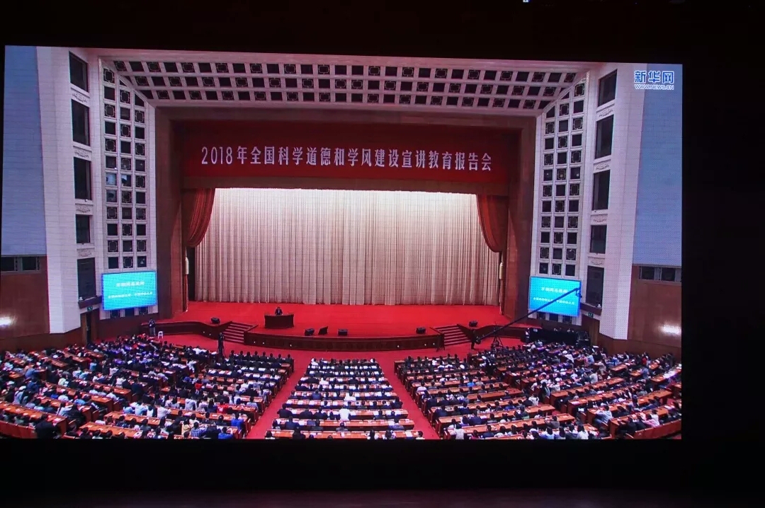 为学习贯彻习近平新时代中国特色社会主义思想、党的十九大精神、“科技三会”精神和习近平总书记关于科学道德和学风建设的重要指示精神,进一步推进科学道德和学风建设宣讲教育工作。10月15日下午,伟德victor1946网站组织全体教职工和所有团学会干部在音乐厅观看了2018年全国科学道德和学风建设宣讲教育视频会。