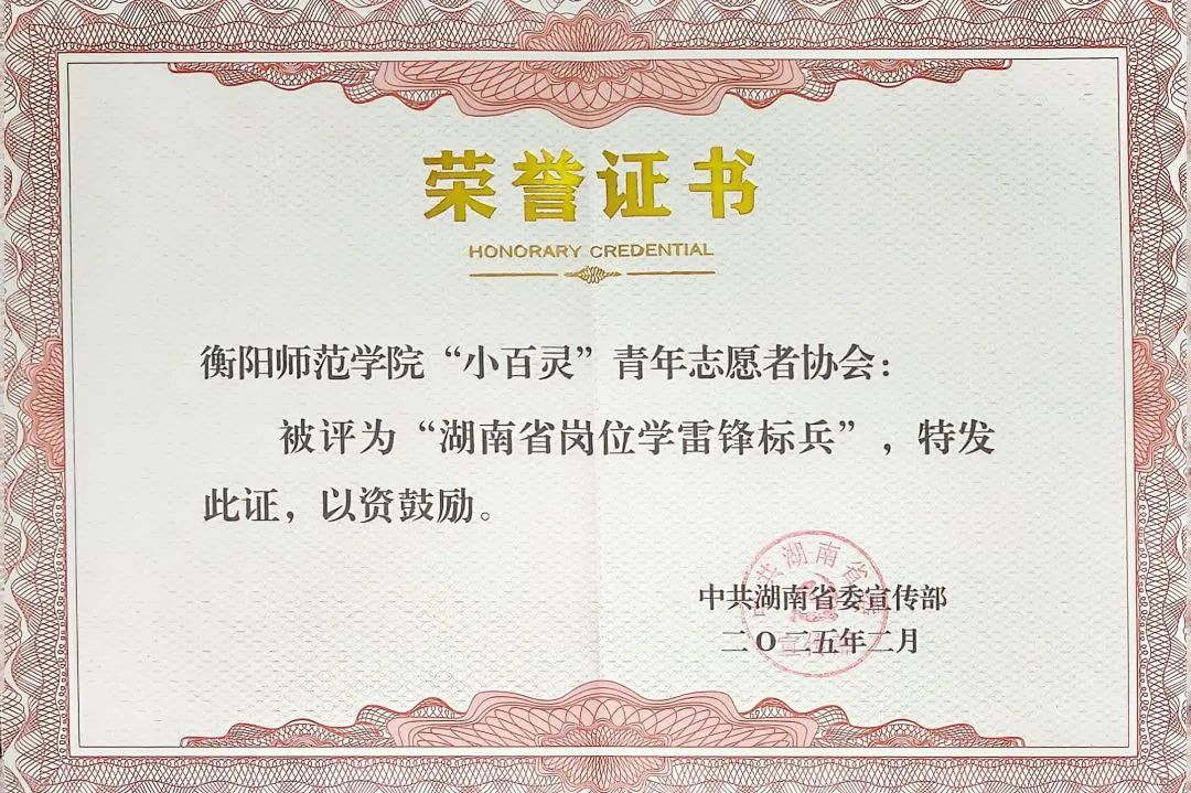 为积极培育和践行社会主义核心价值观,大力弘扬雷锋精神,省委宣传部开展了第五批湖南省岗位学雷锋标兵(含集体和个人)宣传推介活动。经各市州委宣传部和省直有关部门推荐、组织评审,产生了30个湖南省岗位学雷锋标兵集体、30名湖南省岗位学雷锋标兵个人名单。并于2025年2月19日至2025年2月25日将名单予以公示。其中公司“小百灵”青年志愿者协会脱颖而出,获得了湖南省岗位学雷锋标兵集体的荣誉称号。