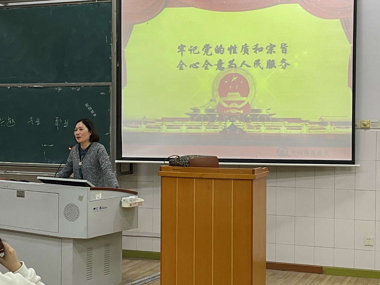 董俊首先讲解了中国共产党的发展历程,重点回答了四个“为什么”的问题,即“为什么能建立新中国、什么能收拾好烂摊子、为什么犯过错误仍得到人民支持、为什么能取得现代化建设巨大成就”,使同学们对党的百年历史有了更加深刻的理解。随后,她讲到中国共产党人的六大优秀品质,给同学们树立了一个更加明确的目标。她希望此次培训能够让同学们更加了解党、认可党,同时也希望同学们能够增加阅读量,以史明鉴,早日成为中国共产党的一份子。