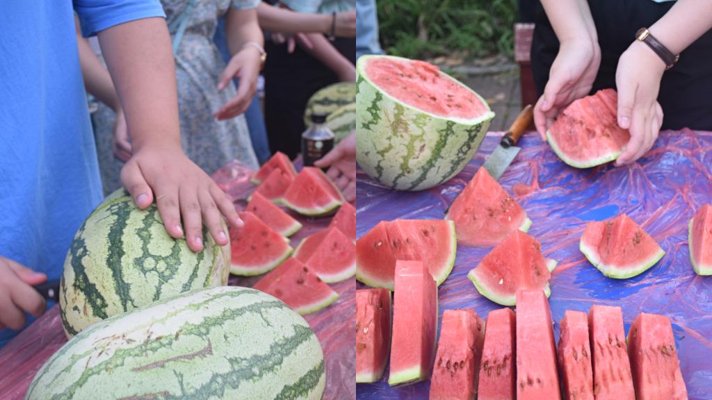 最后,员工党员们将西瓜有序分发到21级新生的手中,希望在这个炎炎的烈日里能带给他们一丝清凉。
