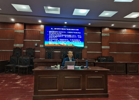 会议中,陈书记向同学们展示了截止至2019年12月31日的中国共产党党内统计公报。透过这些不断增长的数字,我们可以看到中国共产党的队伍不断扩大,中国人的凝聚力不断增强。之后,陈书记耐心仔细的给同学们说明了党工委、党组、党委、党支部、党总支的区别以及各自成立的条件与人数。