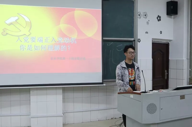 每位同学上台都做了自我介绍并表述自己想要加入党的意愿。随后,大家都分享了通过党课学习逐步端正自己入党动机的心理过程。对于未来要努力的方向,联系自己的思想、学习、生活正面剖析了自身的不足,也明确表示自己今后在学习工作上不懈奋斗,努力加入党组织、成为党的好儿女。