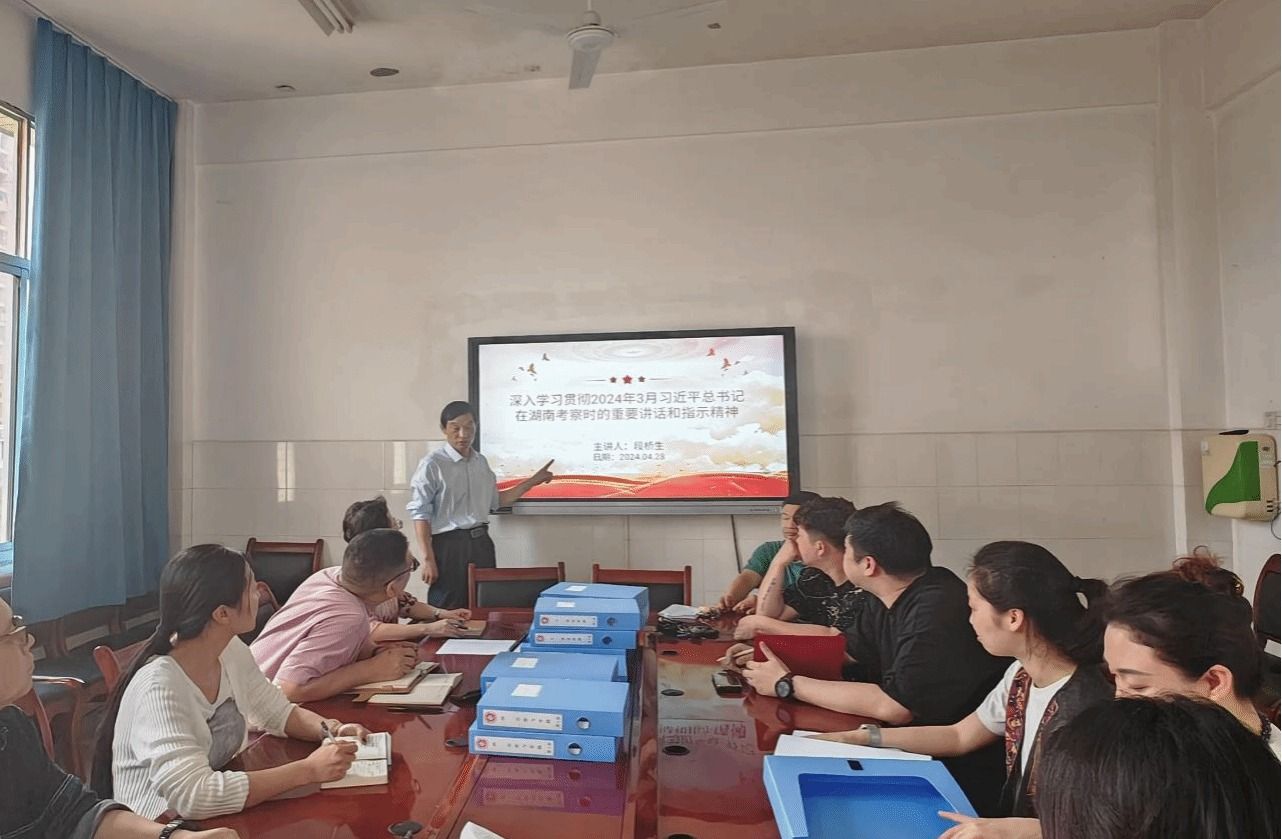 为认真学习领会、深入贯彻落实习近平总书记的重要讲话精神,牢牢把握湖南在构建新发展格局中的战略定位。公司于4月28日下午16:30分在音乐楼313会议室组织全体教师党员开展了关于“深入学习贯彻2024年3月习近平总书记在湖南考察时的重要讲话和指示精神”主题党课,本次党课的主讲人是伟德victor1946网站经理段桥生同志。