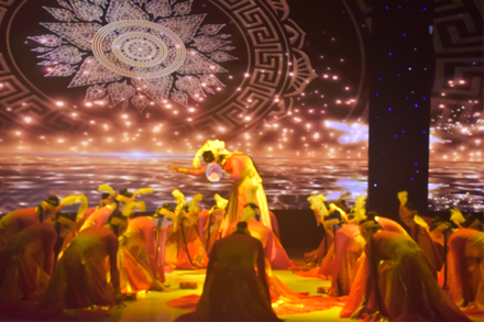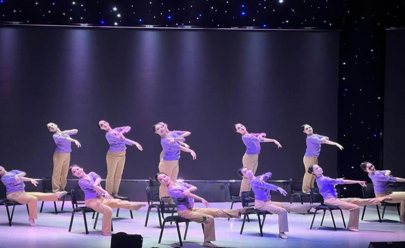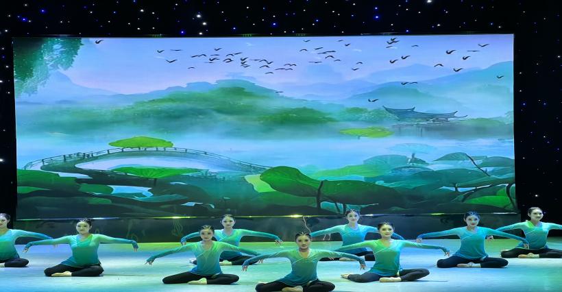 民族民间舞篇章《意蕴舞门》为大家带来多元民族风情。以海阳秧歌《抬龙王》雄浑登场,尽显豪迈气势。男生藏族组合,以奔放之姿展现民族风情;彝族组合,用热情如火的舞蹈演绎民族魅力;傣族组合,以轻盈曼妙之态呈现南国神韵。《石榴红了》—维吾尔族女子群舞,石榴这一果实,向来是团结与繁荣的象征。而舞台上的舞者们,恰似一颗颗饱满的石榴籽,她们以灵动的身姿,尽情演绎着石榴红了之时的那份热烈与美好。